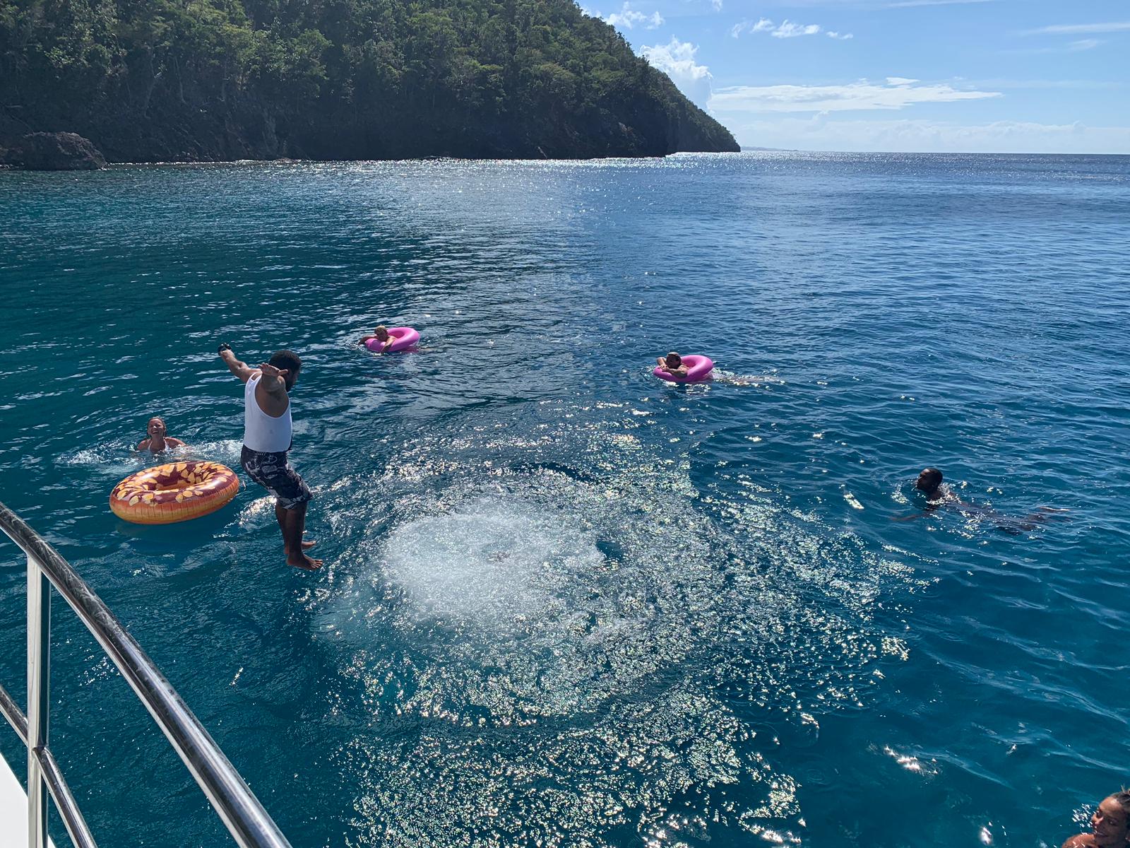 SUNSET in the bay of Rincon and Playita. From 3pm to 7pm, come and discover the breathtaking landscapes, enjoy a swim in the crystal clear waters with a drink in hand, learn to dance bachata on the catamaran ... Friendly atmosphere guaranteed all afternoon.