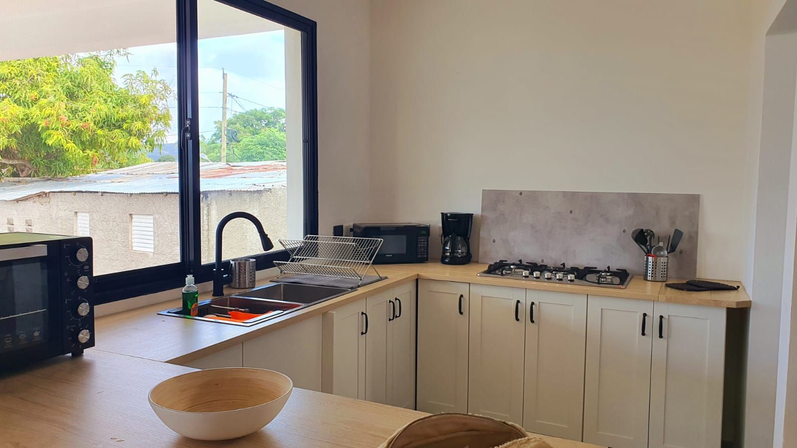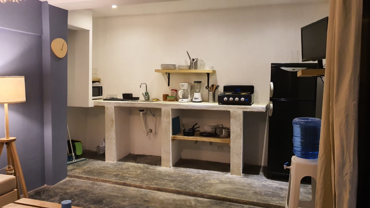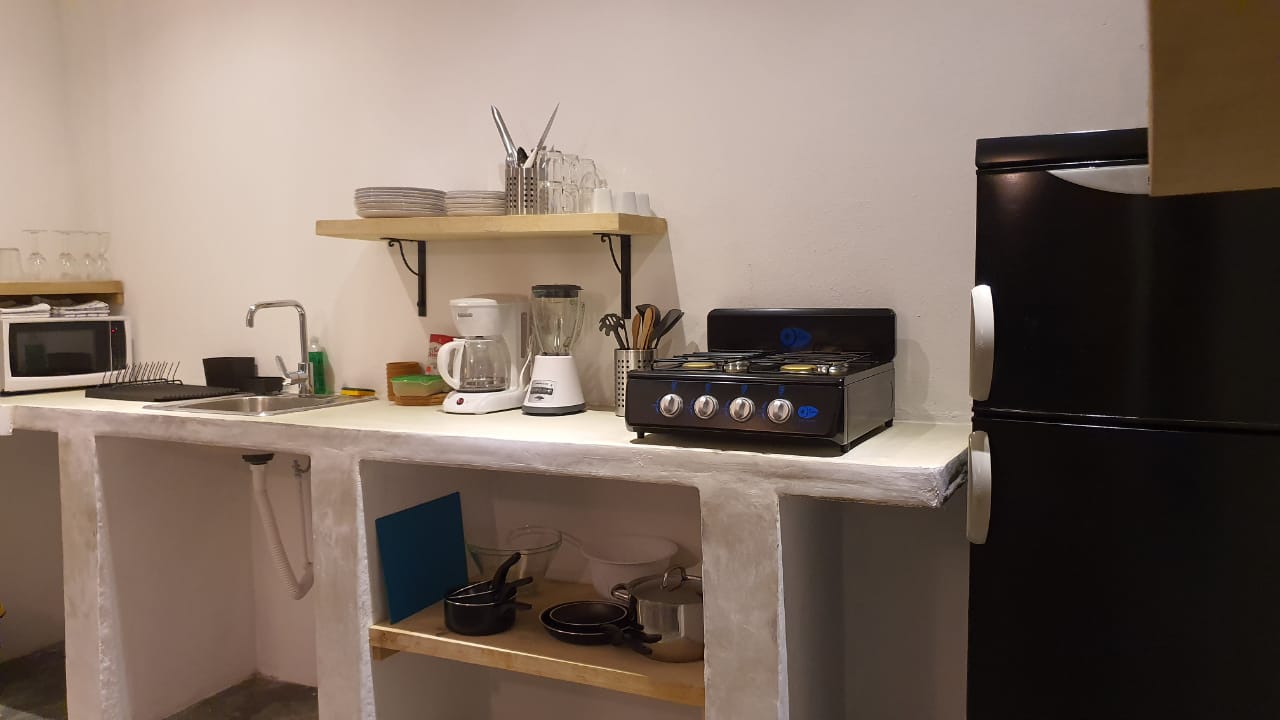 También ofrecemos un apartamento en alquiler todo incluido ubicado a 5 minutos a pie del pueblo y a solo 8 minutos de Playita. El apartamento de 60 m2 dispone de 2 dormitorios (una con air condicionado y una con fan), 1 baño, 1 aseo, 1 salón, 1 cocina totalmente equipada (microondas, horno, cafetera, hervidor, batidora, etc.), 1 terraza cubierta con muebles de jardín y mesa comedor - apartamento equipado con varios fans.